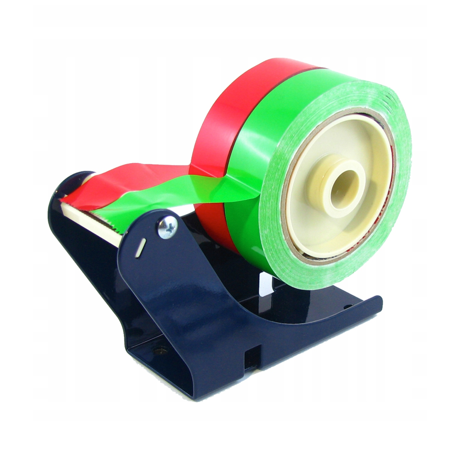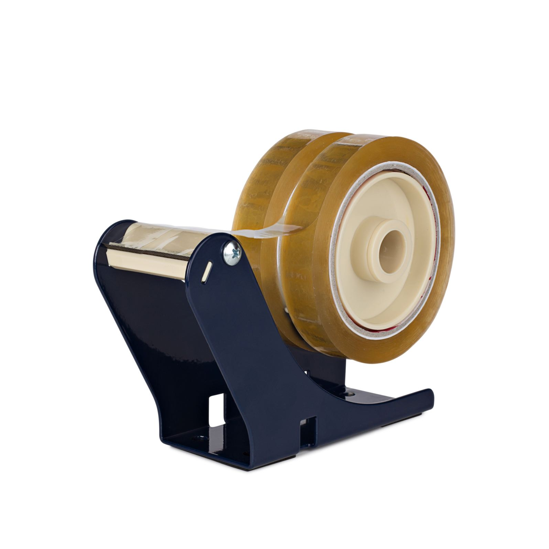 Πρακτικός και στιβαρή επιτραπέζια βάση για ταινίες συσκευασίας, με 2 ρολά χαρτικών ταινιών, που μπορεί να τοποθετηθεί είτε σε επιφάνεια γραφείου είτε σε τοίχο με βιδωτό σφιγκτήρα που συγκρατεί τον διανομέα σταθερά στη θέση του, καθιστώντας δυνατή την αποκοπή της ταινίας μόνο με το ένα χέρι. Μια οδοντωτή μεταλλική λεπίδα κόβει την ταινία στο απαιτούμενο μήκος.